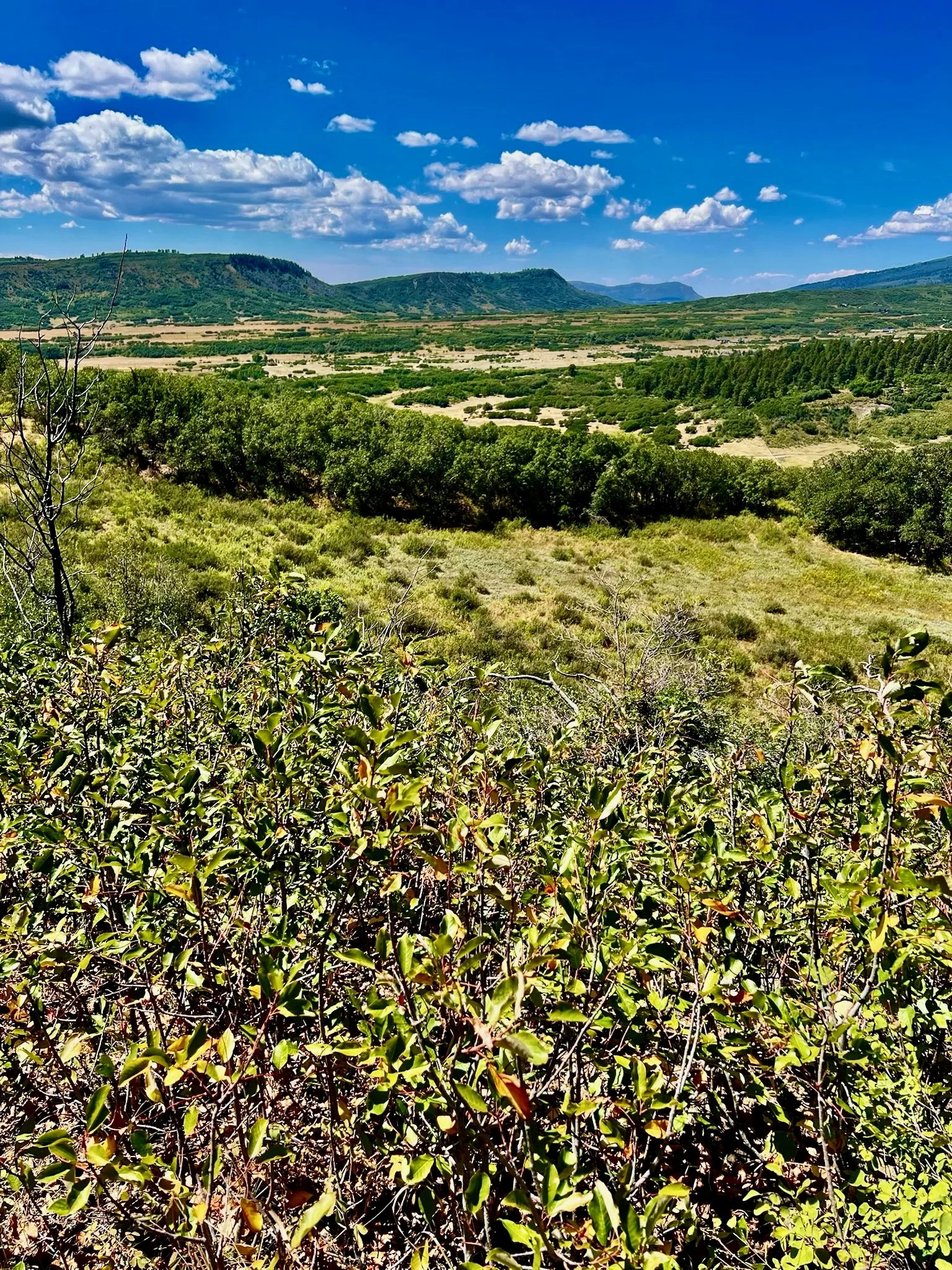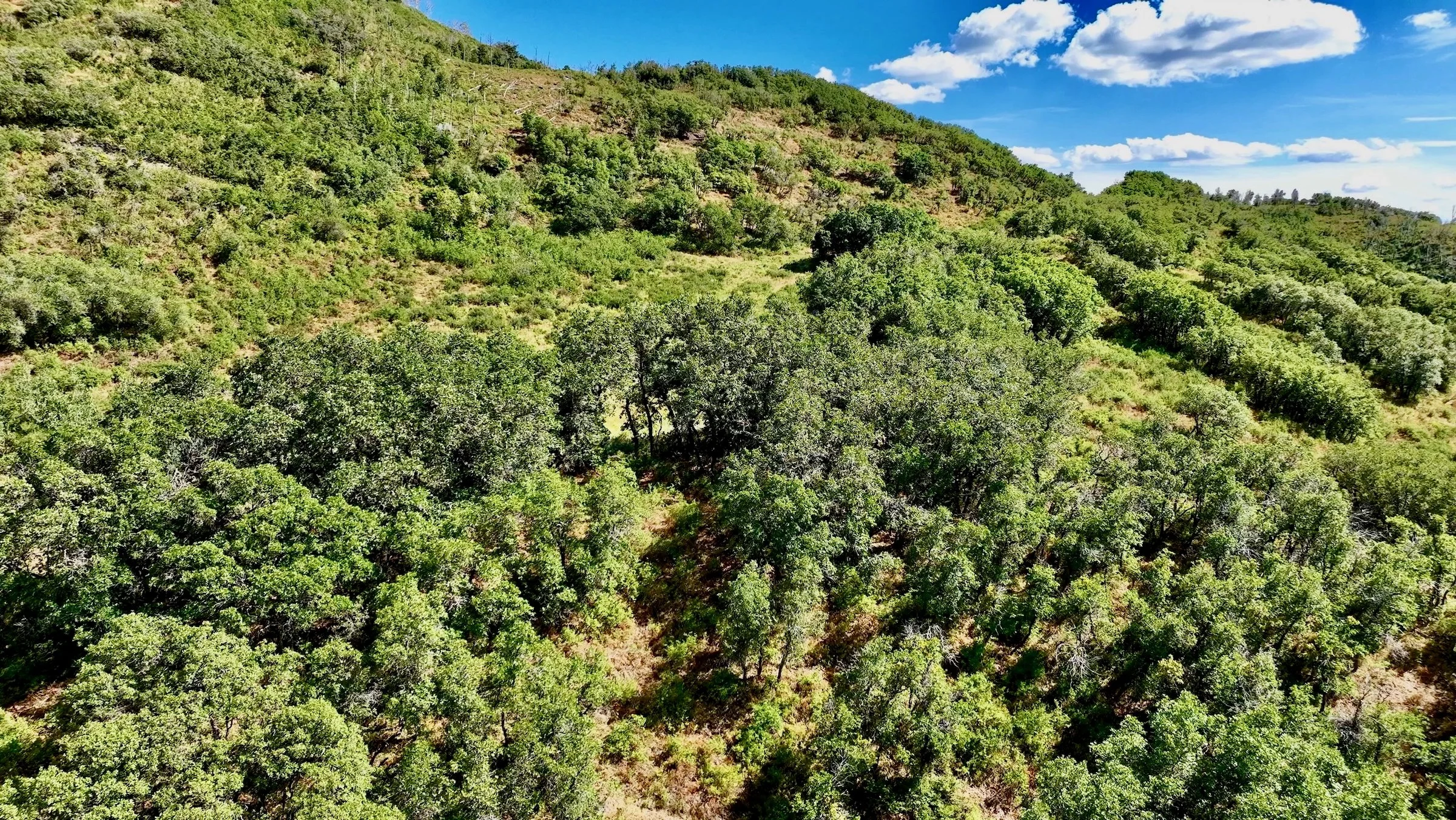 Vegetation includes Gambel oak, serviceberry, chokecherry, aspen, Douglas fir, and spruce