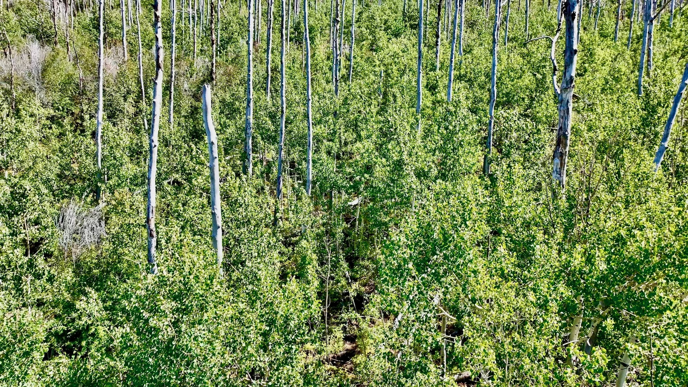 Mix of open meadows, wooded slopes, and old-growth aspen transitioning to new growth