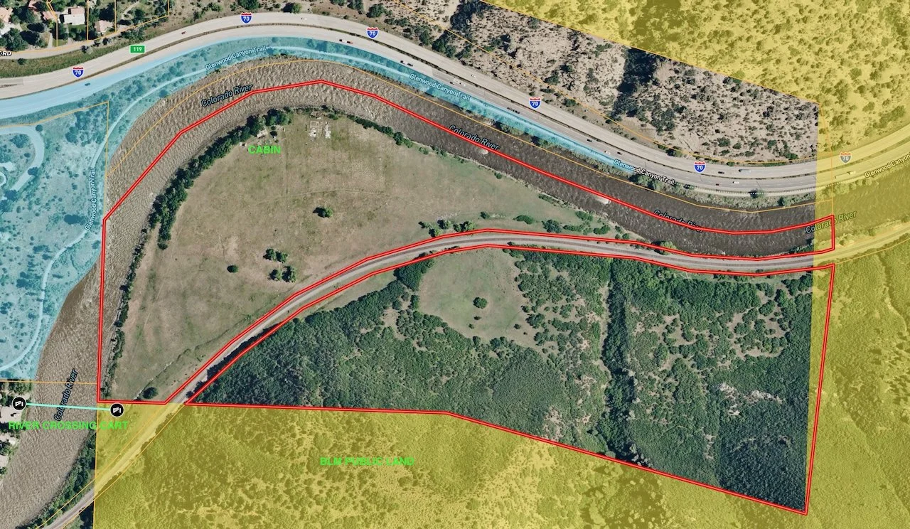 For the analytical buyer, the tract offers meaningful fundamentals often impossible to replicate: 0.6 miles of Colorado River frontage for fishing, 0.7 miles of border shared with BLM land located in GMU 444 for hunting, and both flat and steeper terrain. Its proximity to I-70 and Glenwood Springs enhances year-round usability, while the lack of road access ensures privacy. This property is well suited for someone with a sense of adventure and a budget.